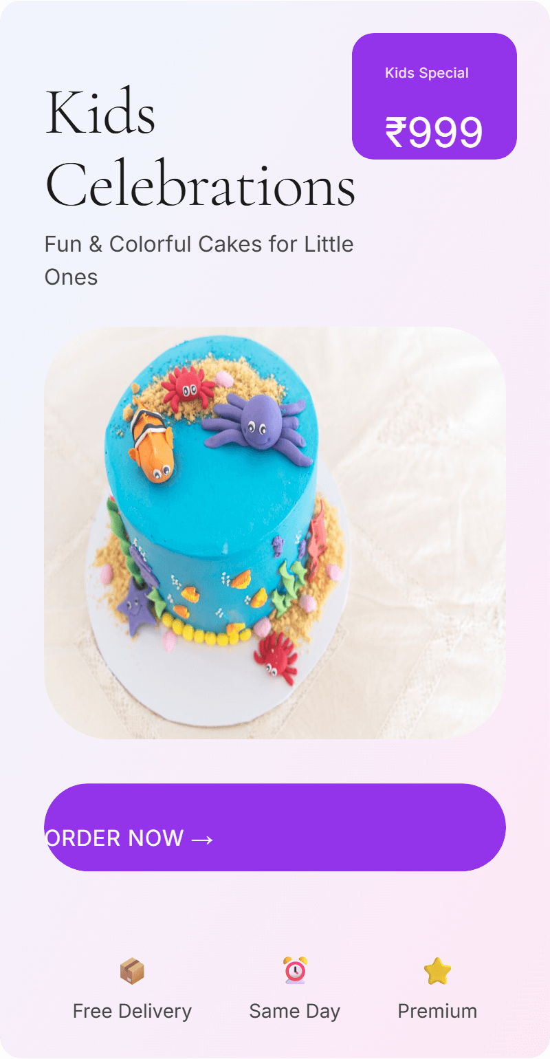 We ensure timely delivery of cakes, flowers and other gifts. Our online cake delivery network is spread across the country, and we deliver within 3 hours with fixed time delivery time option available!