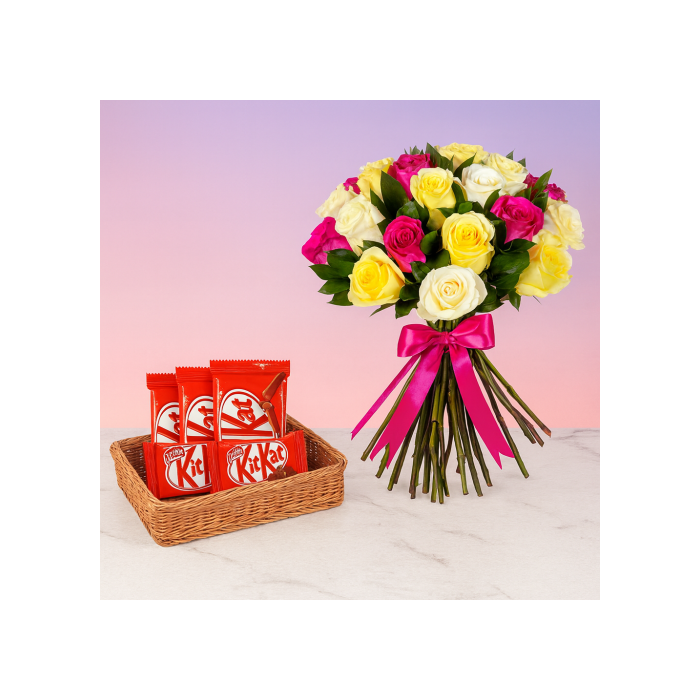 12 Mixed Roses Bunch And 5 Nestle KitKat