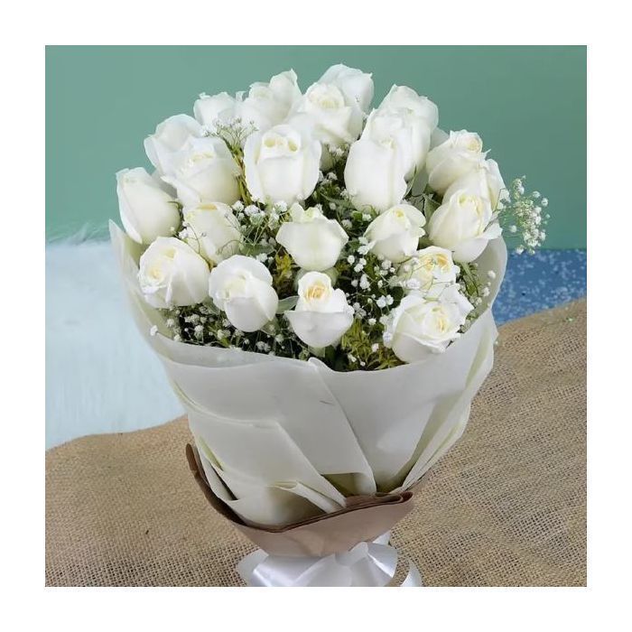 24 Powerful White Roses Bouquet