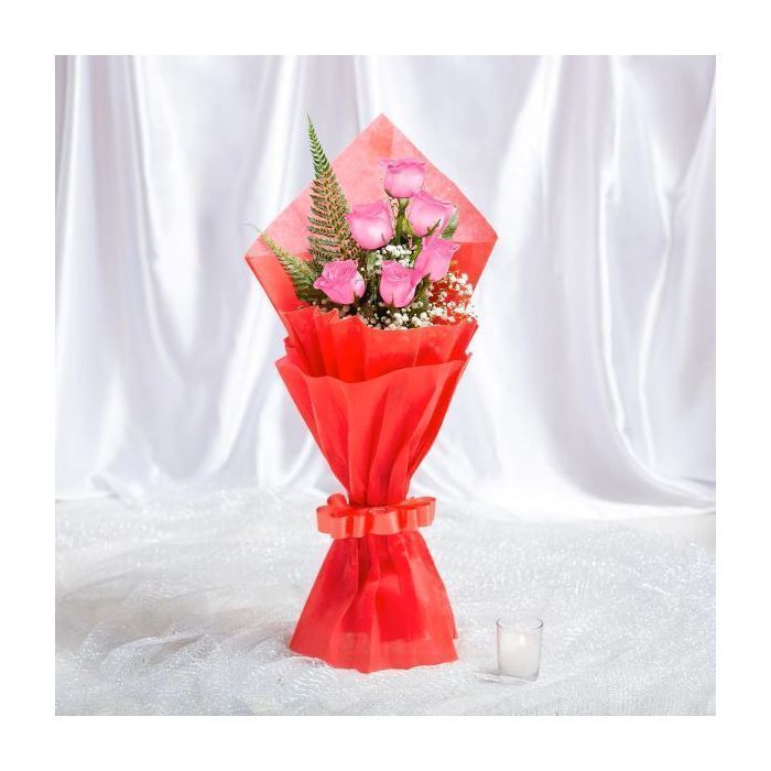6 Blooming Pink Rose Flower Bouquet