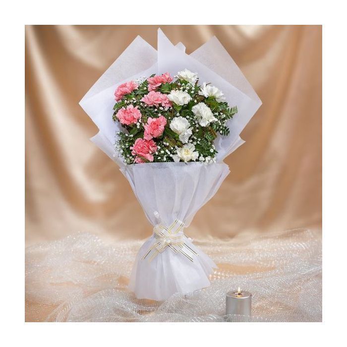 6 Pretty Pink And 6 White Carnations