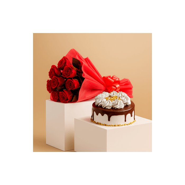 Delicious Butterscotch Half Kg Cake with 9 Red Roses