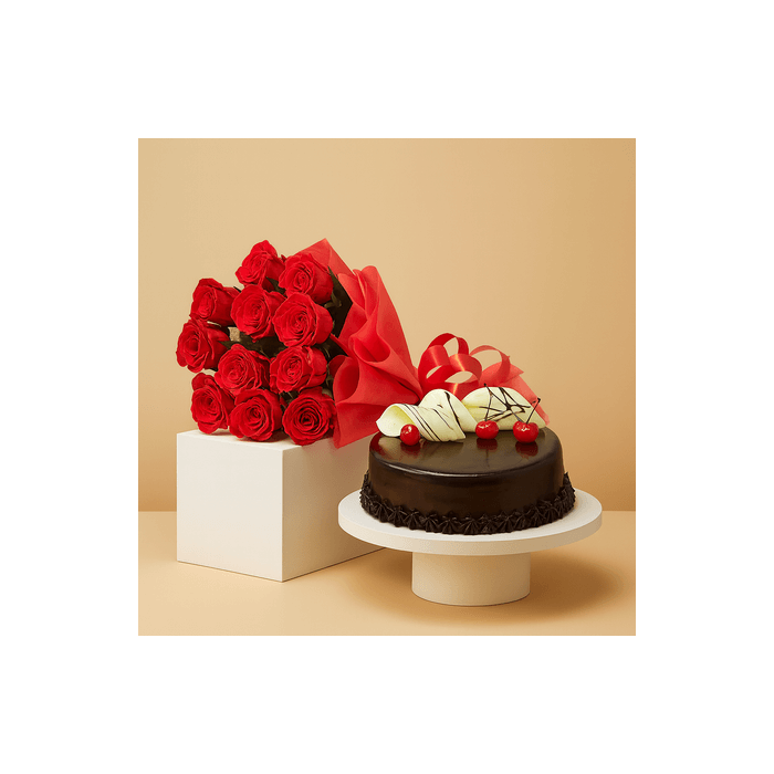 Half Kg Chocolate Gateu Cake with 12 Red Roses