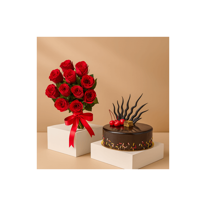Half Kg Rich Chocolate Truffle Cake 12 Red Roses