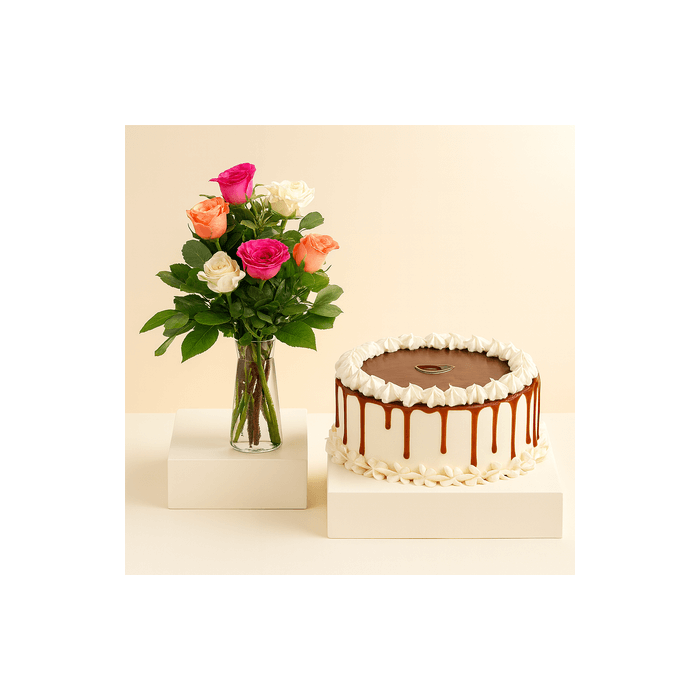 Special Butterscotch Cake Half Kg 6 Mix Roses